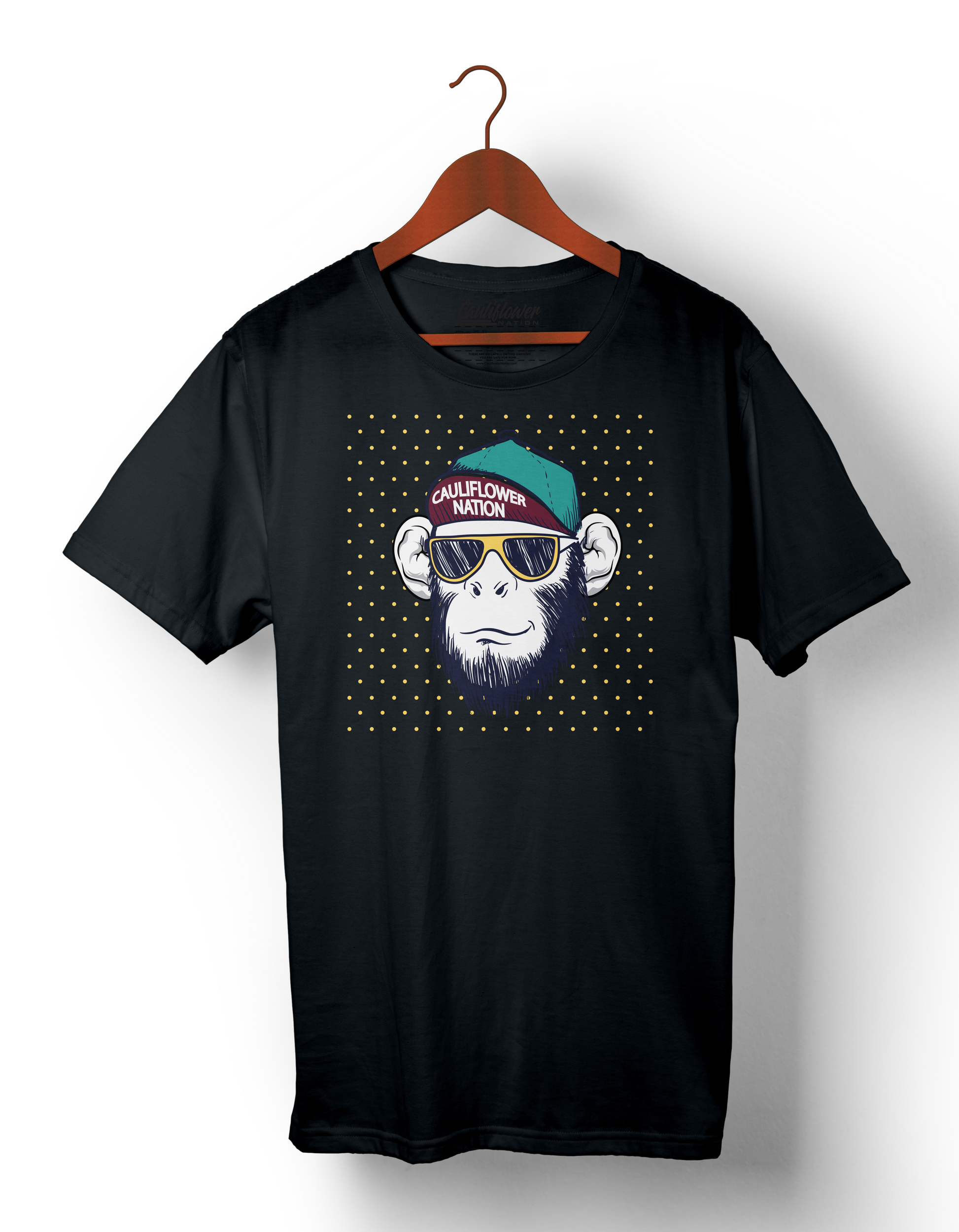 Lions got teeth, sharks have fins, but we apes have these ears that let everyone know we are the predators on the mat. I pretty much call this tee my self-portrait with a little bit of hipster added for flair. Plus since everyone cool wears sunglasses, we added those in too.